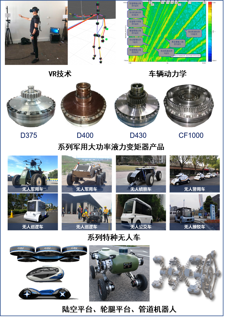 包括多栖车辆设计理论与技术、多栖系统动力学及控制、陆空平台协同智能控制、多模态轮腿仿生机器人技术、空中智能载荷机器人技术。
