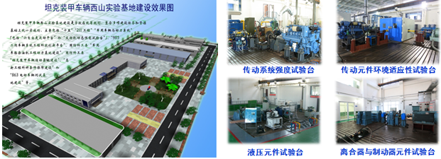 依托车辆传动重点实验室、无人车技术工信部重点实验室,建有1000kW电封闭传动试验台、60Mpa高压液压中心站、大功率车辆传动高低温及振动冲击环境模拟试验台、机电复合传动试验台、车辆动态仿真试验台、车辆噪声测试试验台、陆空平台测试系统、多种智能无人平台,占地7200余平方米,资产达3亿多人民币。试验设备水平和试验室规模均处于国际领先水平。
