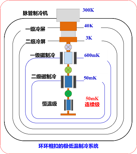 针对空间探测、量子计算等前沿科学中的关键制冷与低温技术,开展极低温绝热去磁制冷技术研究,突破基于多层结构磁工质的耦合制冷关键技术,探索极低温绝热去磁制冷高效循环理论,研制mK温区的高效紧凑极低温磁制冷系统,有望实现极低温磁制冷、深低温制冷等方面的工程应用