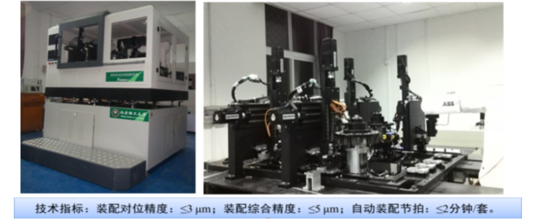 开展了高精度对位技术、复杂异构零件的可靠夹持与释放技术、基于视觉与力反馈的调整技术、异质表面图像处理与快速识别技术、智能型装配单元控制系统技术等,研制出多台高精度柔性自动化装配设备与控制系统。