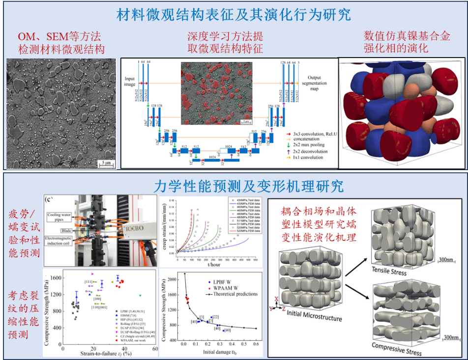 针对难熔金属、镍基高温合金等材料在增材制造沉积过程中的开裂问题,以及增材制造复杂结构件的优化设计和力学性能预测等问题,结合试验和数值建模方法,深入讨论了增材制造过程中材料的变形机理,提出了增材制造复杂结构件的性能预测方法,建立了增材制造工艺-组织-性能之间的量化关系,为高性能增材制造技术的发展提供了理论和技术支持,该方向获得国家自然科学基金、国家重点研发计划等多项项目的支持。