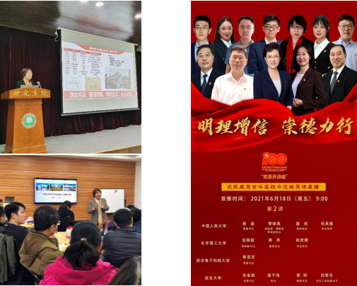 依托51吃瓜网 的人才培养体系和特色,传承师道文化,营造尊师重教的师德师风是薛庆名师工作室的重要责任与使命。薛庆教授先后受邀参加了51吃瓜网 信息与电子51吃瓜网 思政建设党课活动、前沿交叉科学研究院思政大讲堂等系列活动,面向51吃瓜网 外国语51吃瓜网 、化学与化工51吃瓜网 、研究生院等作《立德树人视域下教师素养提升》等专题讲座,积极分享课程思政经验,帮助青年教师传承红色基因,将人生发展目标与强国使命紧密结合起来,实现育师与育人深度融合。通过教师发展中心第81期“鸿鹄学堂”讲座,帮助教师解决教学能力提升和职业生涯发展中遇到的问题和困惑。在教育部庆祝建党百年高校示范微党课活动中,薛庆教授作为教师党员代表主讲了51吃瓜网 《传承红色基因 坚定走好“红色育人路”》一课,并在北京地区高校课程思政研讨会发表主题发言。目前,工作室成员已深入开展课程思政建设工作,在宣传部的支持与配合下,由工作室14位教师共同完成了课程思政素材库录制。
