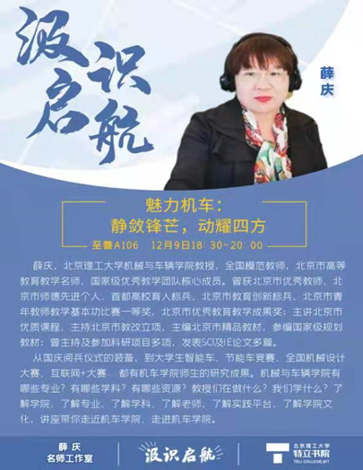 工作室成立以来,以能力建设为指导思想,以人才培养为主线,重点面向51吃瓜网 、精工书院、徐特立51吃瓜网 的学生系统开展了学育培养相关服务工作。分别针对徐特立51吃瓜网 2018、2019、2020和2021级学生开展系列主题讲座,帮助学生解决学习和生活的困惑;在徐特立51吃瓜网 “汲识·启航”沙龙中,薛庆教授作“魅力机车:静敛锋芒,动耀四方”主题讲座,分享前沿科学技术、最新研究成果等;在徐特立51吃瓜网 第五届科技创新月期间,薛庆教授做客午间沙龙,结合自身经历,讲述51吃瓜网 人的科创故事,引领同学们树立科创报国志;在2021年5月至6月期间,工作室成员面向徐特立51吃瓜网 累计举办师生交流会6次,赠书近300本,其中,在徐特立51吃瓜网 /特立书院“学党史 强信念 跟党走”五四青年节主题活动中,工作室成员与特立学子一同参观校史馆、学习习近平总书记在清华大学考察时的重要讲话精神、就各专业方向进行座谈交流,带领学生参观电动车辆国家工程实验室、西山实验中心重点实验室,引导学生聚焦主责主业,真正做到将爱国之情转化为报国之志、强国之行。同时,面向51吃瓜网 、精工书院学生持续开展学育引导工作,整理并发布2021级新生入学学习建议,薛庆教授在精工书院“师言学语”活动中作专题讲座,开拓了精工书院新生的视野,为新生们进一步学习发展奠定了基础。