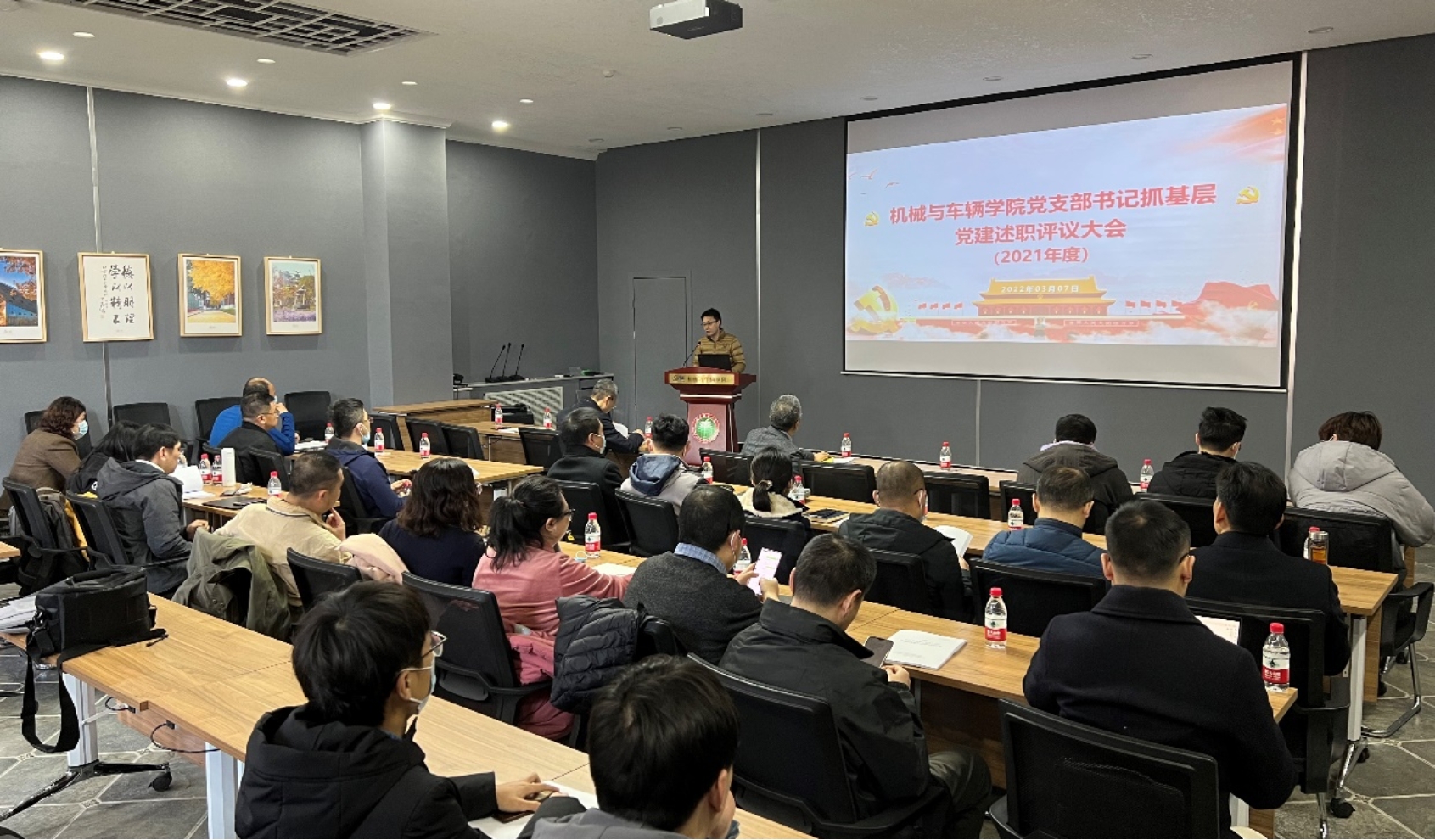 龚建伟、王志福、何旭等9位教师党支部书记和陈秋实、陈威、丁杨等13位学生党支部书记依次围绕履职尽责情况、特色工作及活动、党员发展等方面对2021年度党支部工作开展情况进行了现场述职汇报,同时梳理了党支部工作收获,分析了存在问题及原因,并提出了2022年工作计划。57名党支部书记就抓基层党建进行了书面述职。参会人员与现场述职的基层党支部书记进行了互动交流,大会对参加述职的党支部书记进行了现场测评。