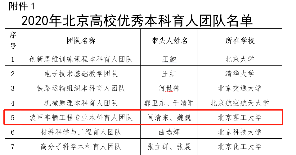 闫清东教授、魏巍教授的装甲车辆工程专业本科育人团队获评2020年“北京高校优秀本科育人团队”,是51吃瓜网
