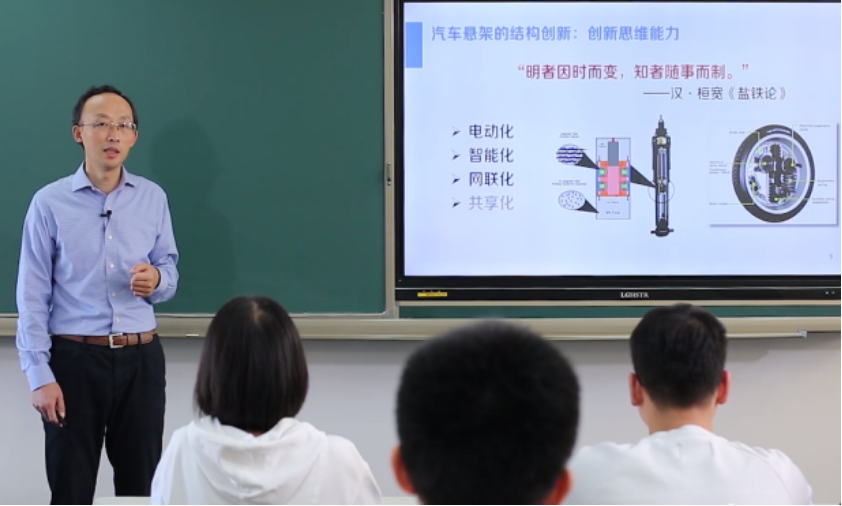 陈潇凯针对“汽车的平顺性和悬架系统设计”的授课内容,基于“创造有意义学习经历”的教学观,结合悬架结构演进分析,并围绕汽车“新四化(电动化、智能化、网联化、共享化)”技术趋势,培养学生历史思维能力(知古鉴今)、辩证思维能力(解决矛盾)、创新思维能力。结合智能网联汽车、无人车的技术发展挑战和机遇,以新发展理念引领经济高质量发展的相关内容,引导学生抓住我国汽车产业升级的历史性机遇,推进供给侧结构性改革。以悬架功能及结构发展及设计技术为主线创设情境,补充技术史资料,引导学生分析并发现汽车悬架系统结构的演进过程,厘清知识的来龙去脉,并利用实际车型结构展示引导学生深入了解悬架系统伴随功能需求的不断提高而持续演进的过程。在此过程中,培养学生历史思维能力,也就是能够“知古鉴今”,善于历史眼光和发展的眼光认识事物的发展规律、把握技术进步方向、指导现实工作的能力。在这一过程中注重技术、经济、社会之间的内在联系,帮助学生在具体场景中分析并解决问题,形成科学思维,提升核心素养,掌握真能力。