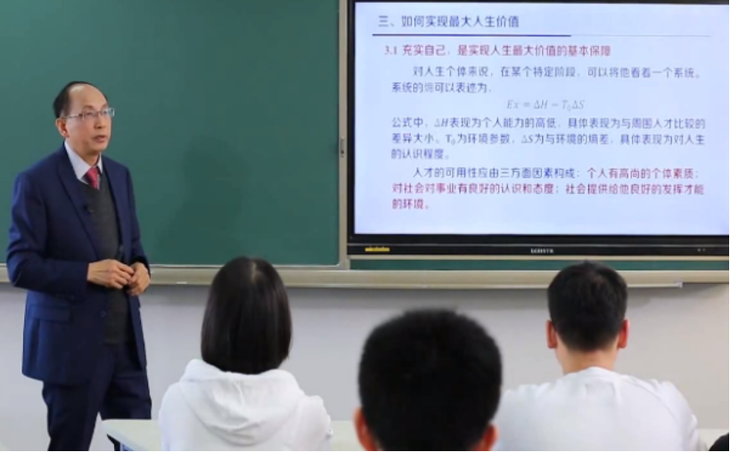 郑宏飞围绕“热力学定律与人生启示”的主题,从“在热力学中讨论生物学问题是可能的”、“热力学系统与人体生物学系统的比较”、“如何实现最大人生价值”等三方面进行内容讲解。课程借用热力学规律探索人生的发展轨迹,指出稳定平衡定律、熵增定律均与人生发展规律具有相似性,并用热力学系统的发展规律指导人生的规划。借鉴热力学系统的㶲评价理论,探寻实现人生最大价值的基本方法。郑宏飞教导同学们充实自己的能力,是实现人生最大价值的基本保障;优选人生舞台,把握人生关键期,才能追求人生最大㶲值,实现辉煌人生。