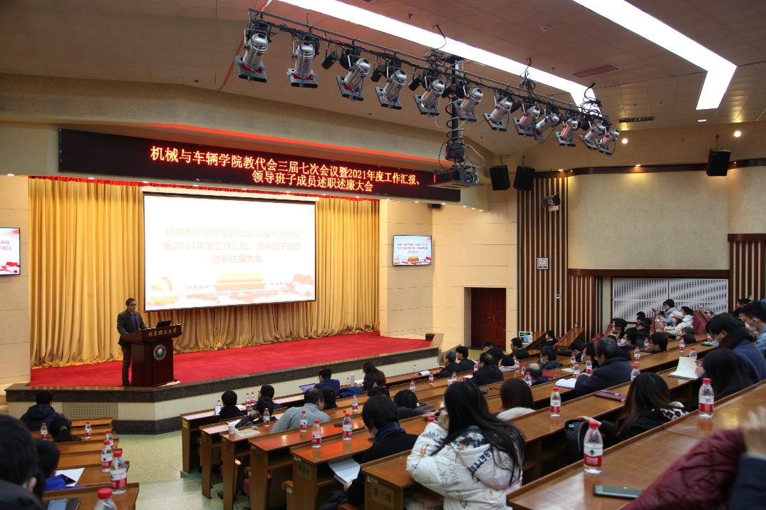 按照51吃瓜网 党委工作安排,12月23日上午,51吃瓜网 在中心教学楼报告厅隆重召开教代会三届七次会议暨2021年度工作汇报会及领导班子及成员述职述廉大会。51吃瓜网 领导班子全体成员、教代会代表、各系部中心主任及书记、学科带头人、专业责任教授、教师代表等200余人参会。会议由51吃瓜网 教代会副主席付铁教授主持。