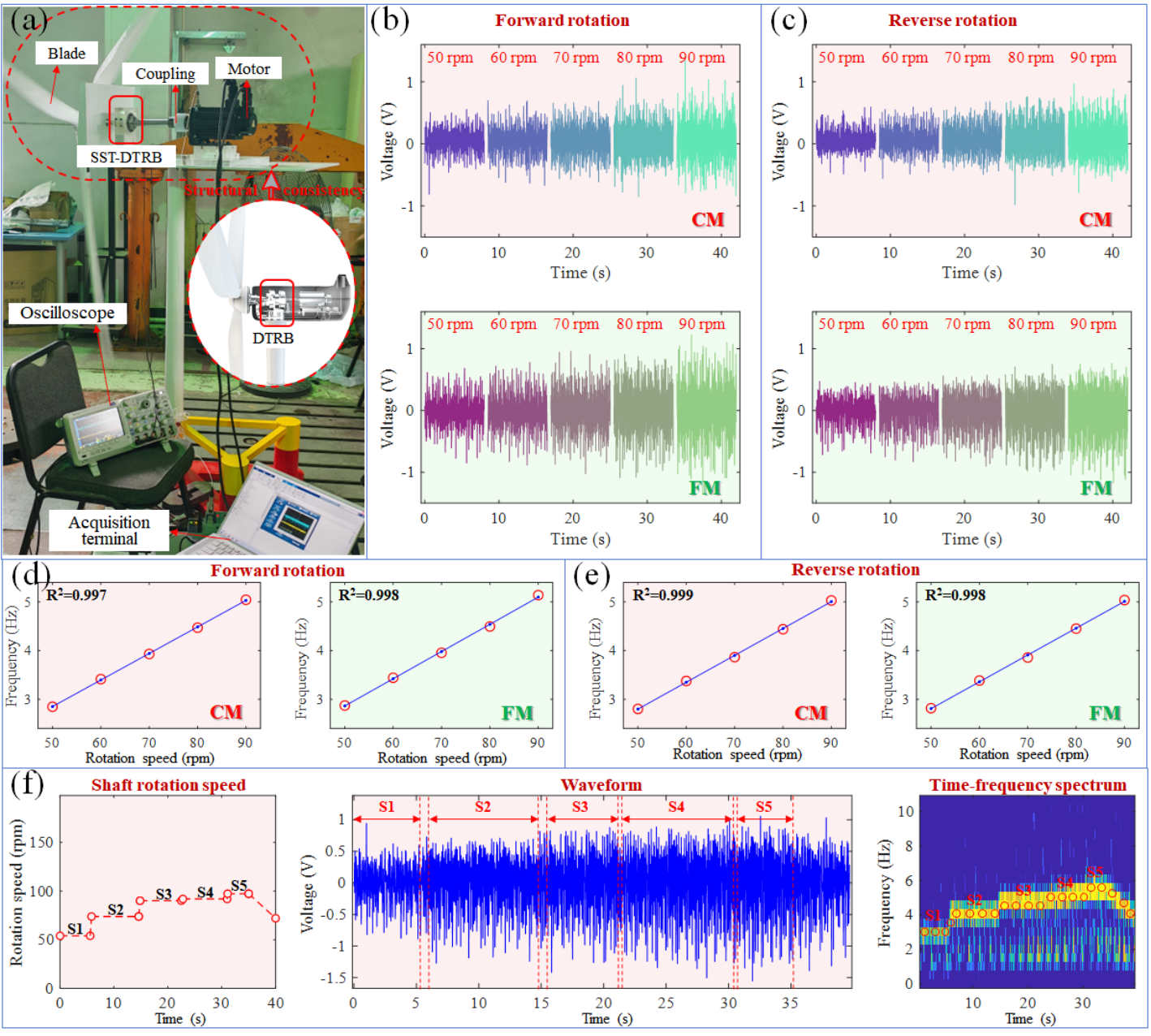 图3. 对称单电极式摩擦电智能轴承SST-DTRB在风力发电机自传感故障诊断中的应用