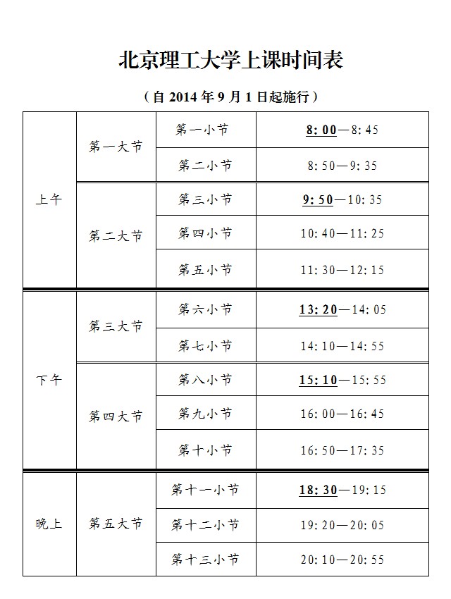 上课时间表